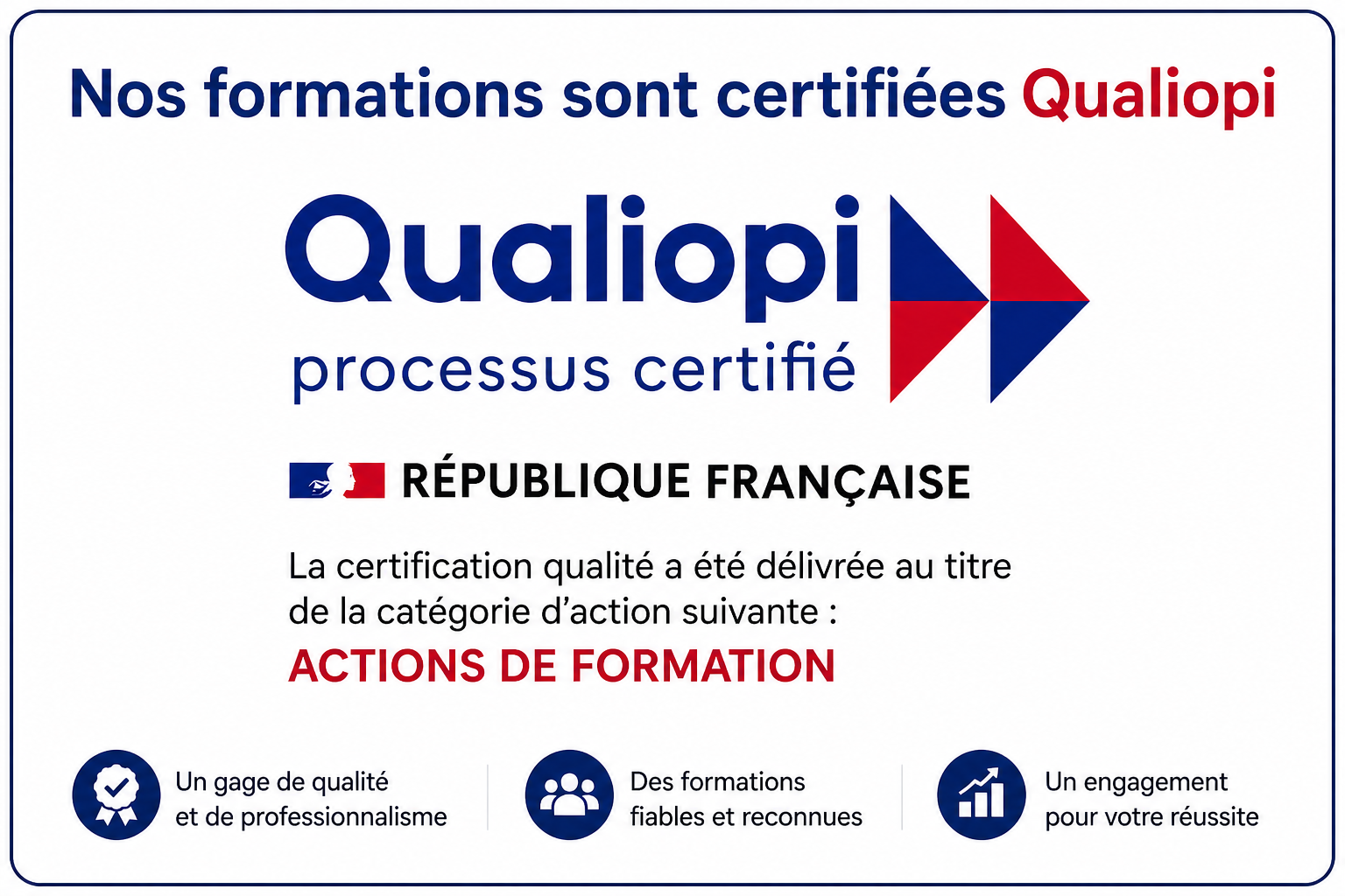 Nos formations sont tous certifiées Qualiopi et conçues pour vous apporter des compétences solides et concrètes. Que vous souhaitiez maîtriser les bases de l'informatique ou comprendre l'intelligence artificielle, nous avons le programme qu'il vous faut. Apprenez en ligne, à votre rythme, avec des sessions en visio.